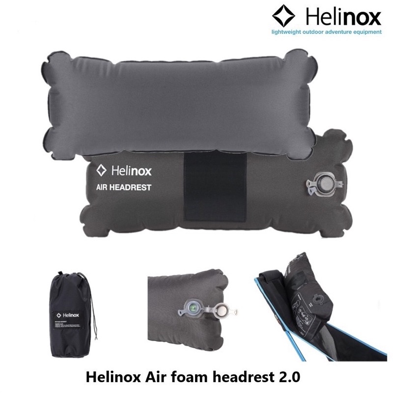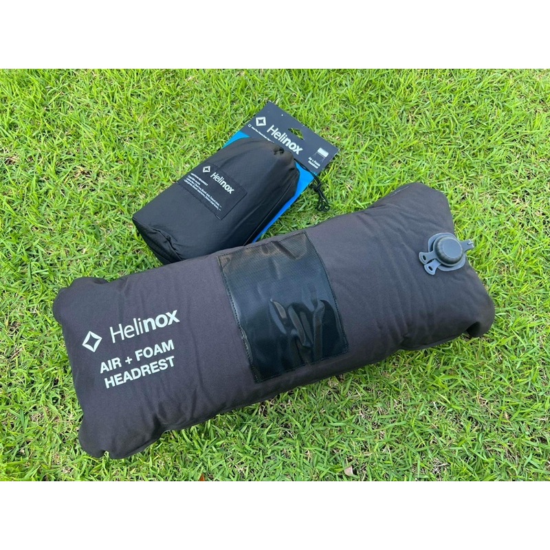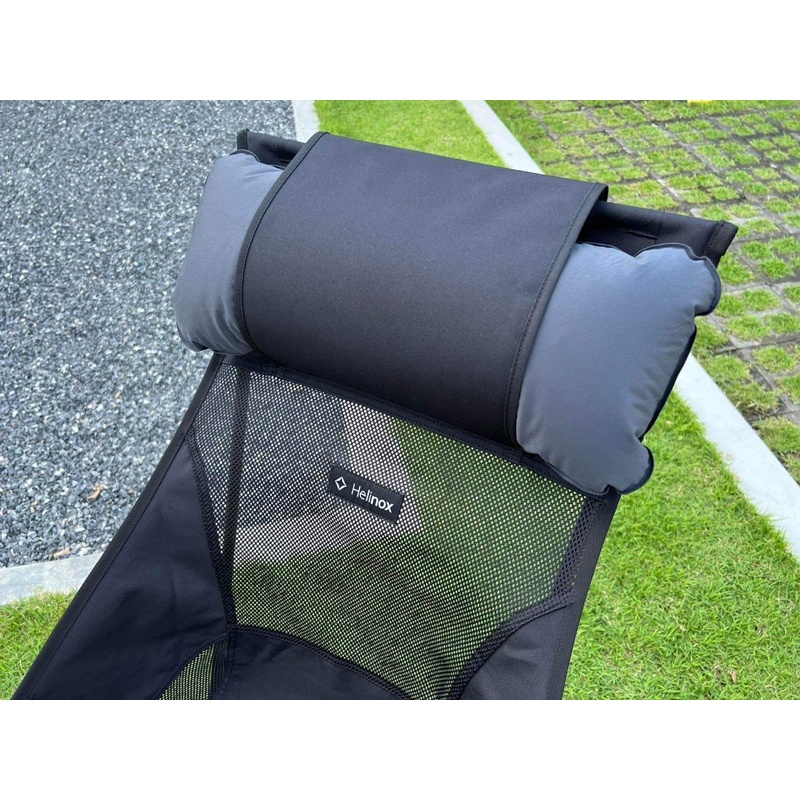 Air foam headrest หมอนลมเสริมโฟมหนุนสบาย ใช้ประกอบกับเก้าอี้ Helinox ที่มีแถบเวลโครในซีรีส์sunset chairs และ beach chairs มีวาล์วเดียว เป่าลมง่ายและเร็ว ปรับความอ่อนนุ่มได้ตามต้องการ
