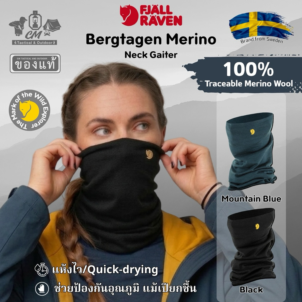 🔹ผ้าปิดคอ Bergtagen Neck Gaiter เนื้อนุ่มเบาสบาย ระบายความชื้น ทนต่อกลิ่น ผลิตจากขนแกะเมอริโน ปราศจากสาร PFAS