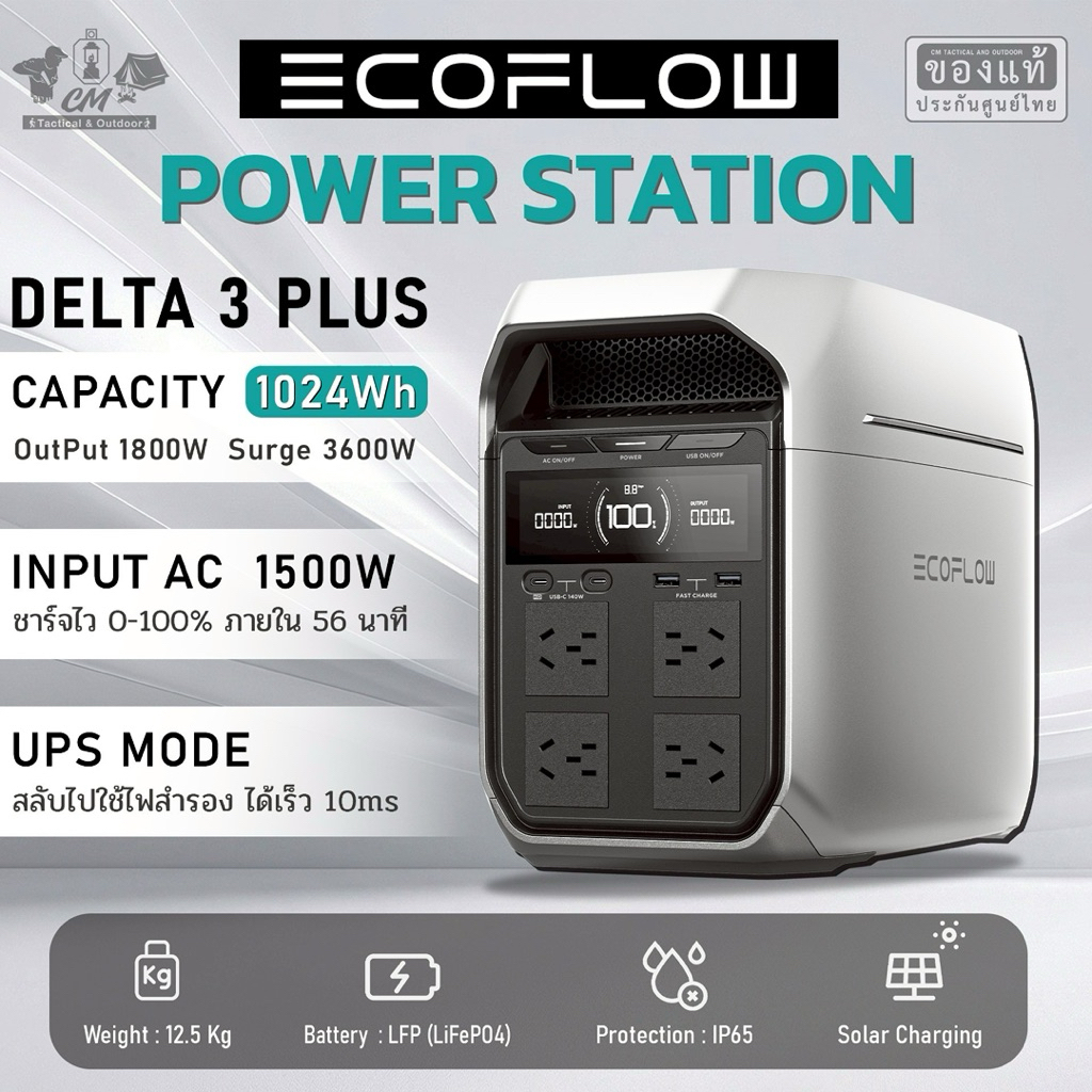 🔹 ชาร์จหลายแหล่งพลังงาน (Multi-Charging): รองรับการชาร์จแบบ AC + Solar อินพุตรวม 1500W ชาร์จเต็มใน 56 นาที
