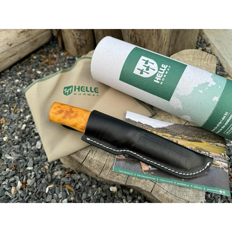 🔹Eggen มีดขนาดกลาง ใบมีดทำจาก 12C27 มีด้ามจับที่สวยงามทำจากไม้เบิร์ชคัดสรรอย่างดี ผ่านการขัดด้วยมือจนเงา เป็นมีดที่ชื่นชอบของผู้ใช้หลายคนทั่วโลก นี่เป็นมีดที่ใช้งานได้รอบด้าน มาพร้อมปลอกหนังแท้คุณภาพสูงและสายคาดเข็มขัดเพื่อการพกพาที่ปลอดภัย 🔹Weight incl. sheath: 150 g / 5.29 oz 🔹 Blade material : 12C27 stainless steel 🔹 Blade thickness : 2,9 mm / 0.114 inch 🔹 Blade length : 101 mm / 3.97 inches 🔹 Blade construction : Stick tang 🔹 Handle material : Curly birch 🔹 Handle length : 110 mm / 4.33 inches 🔹 Sheath material : Genuine black leather