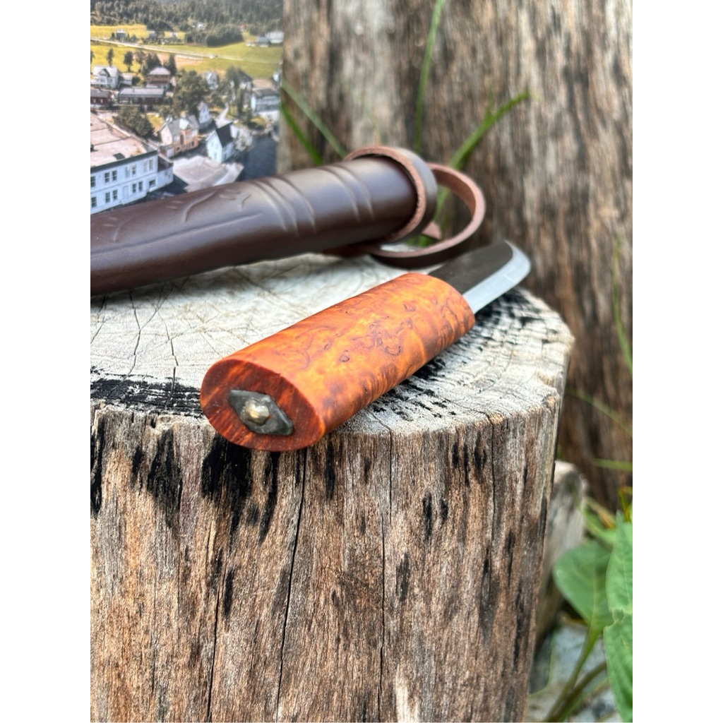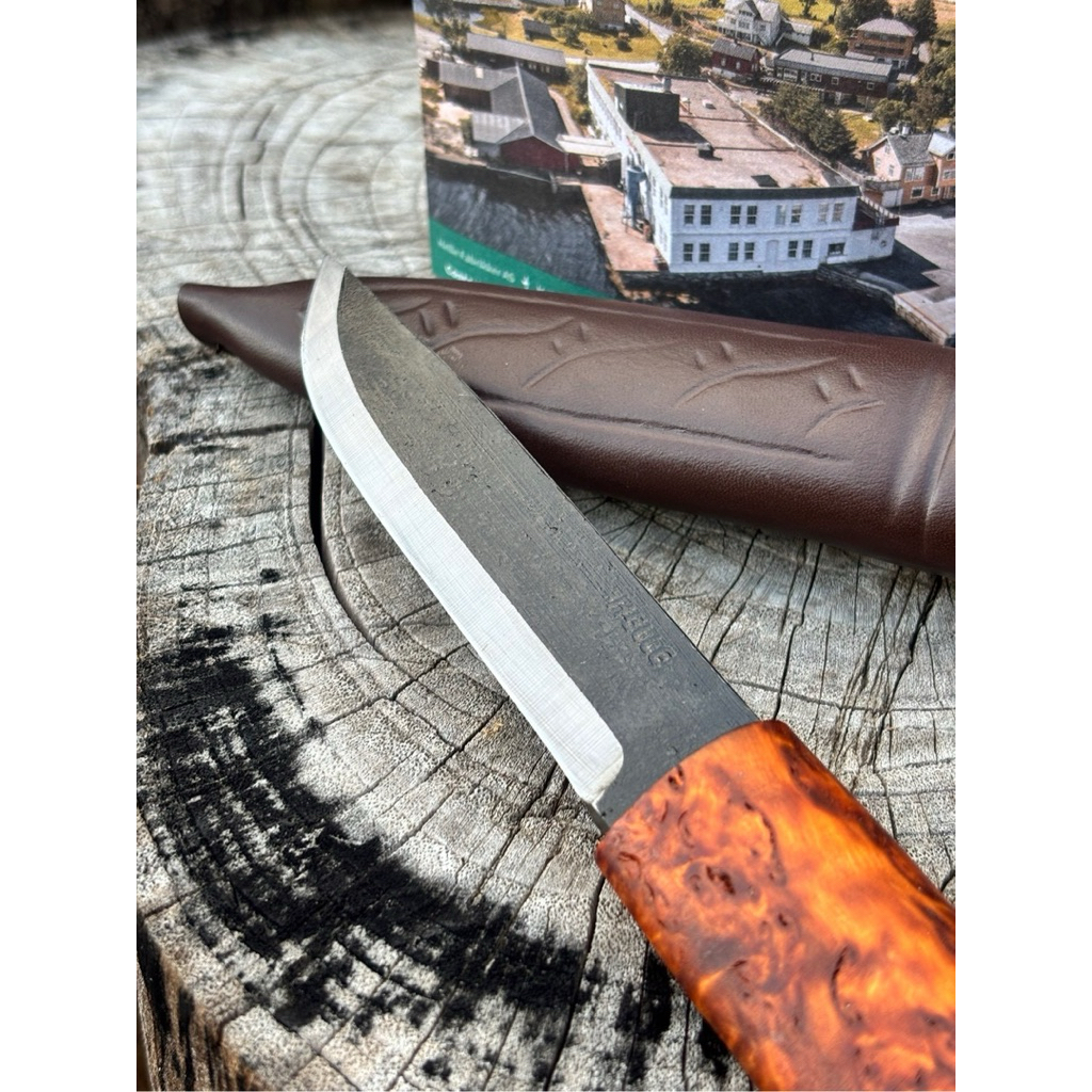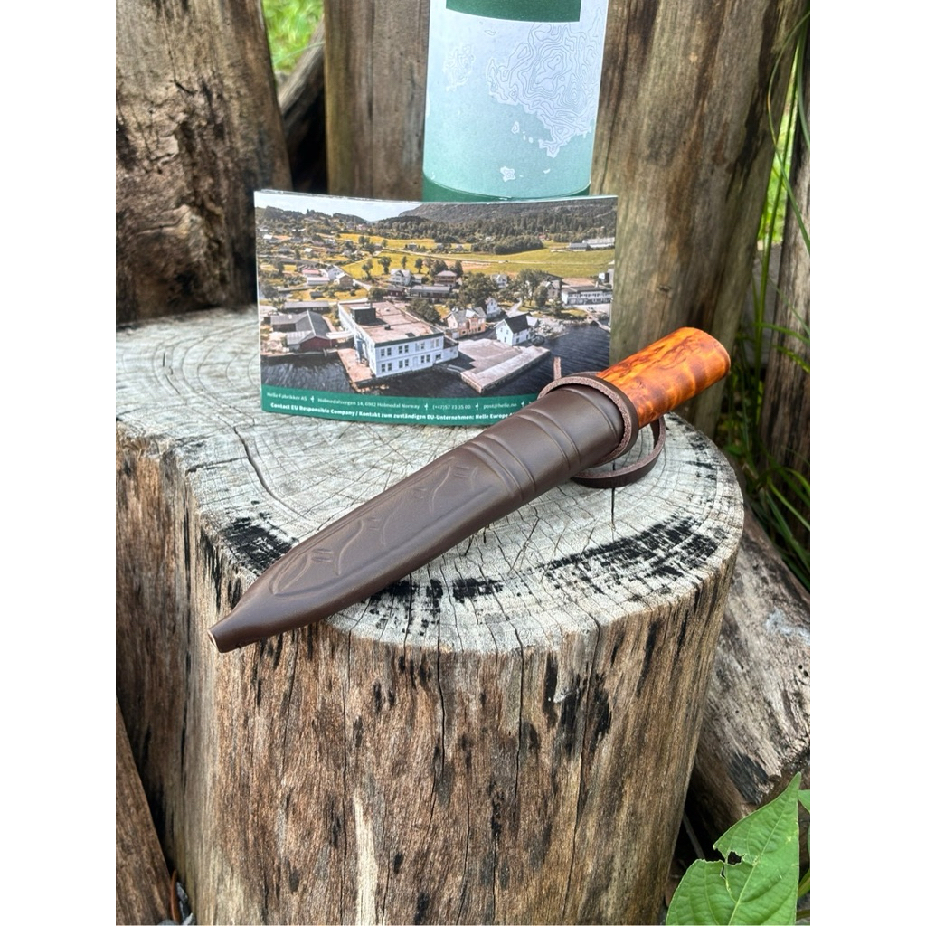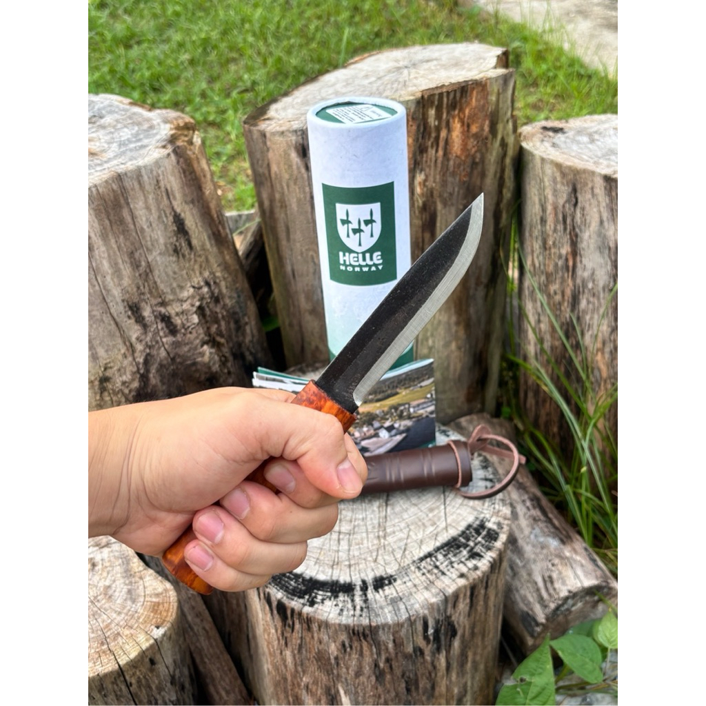 🔹Helle Viking เป็นมีดสไตล์คลาสสิก ให้อารมณ์ความดิบ ดุดัน ใบมีดหนาพิเศษและคมเฉียบ มาพร้อมกับซองหนังแท้ขี้นลาย ใบมีดทำจาก Triple Laminated Carbon Steel ด้ามมีดทำจาก Curly Birch